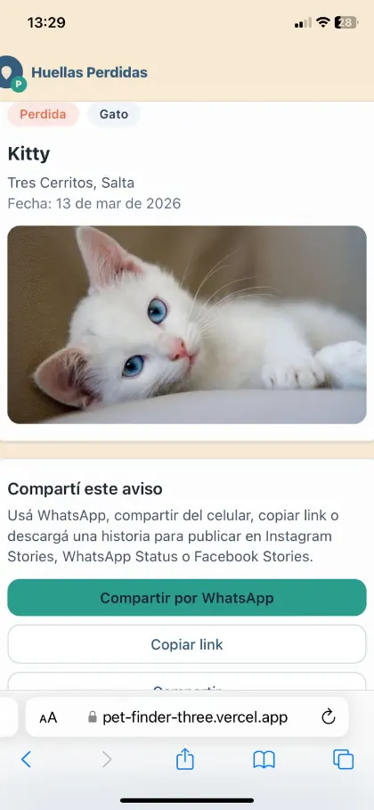 Huellas Perdidas reúne avisos públicos, alertas cercanas y ayuda de la comunidad para que un caso llegue más rápido a las personas correctas.
